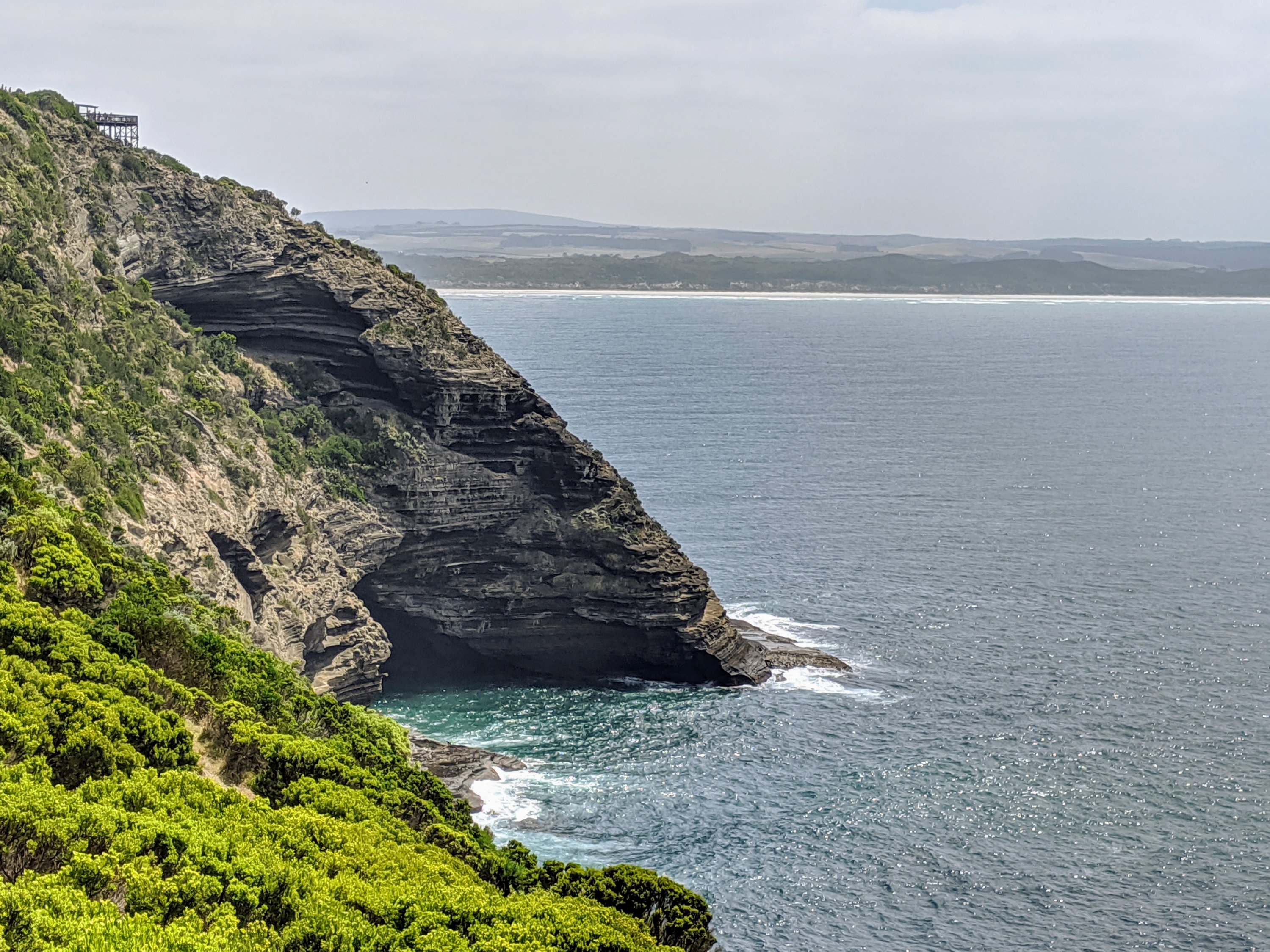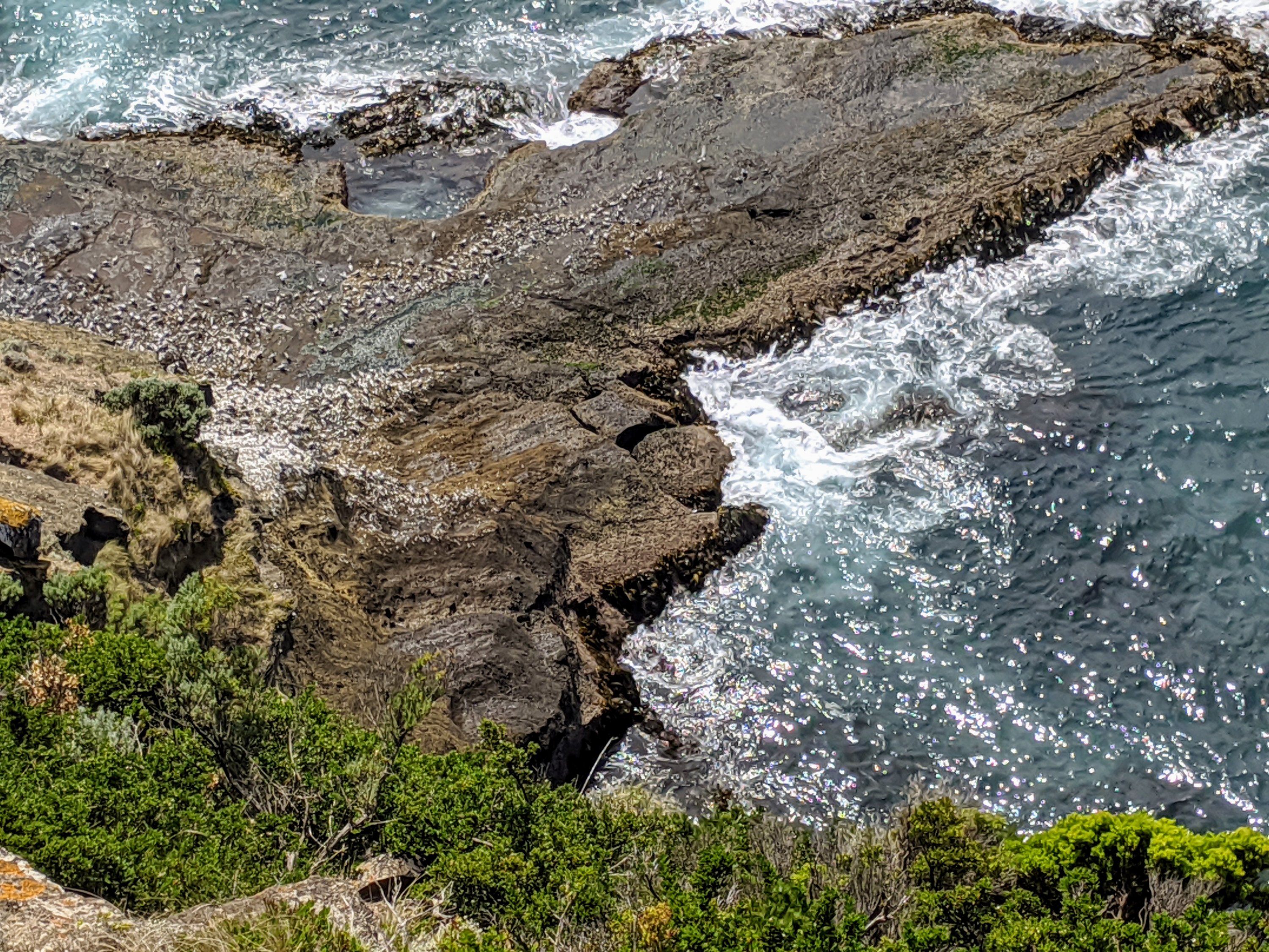 It’s an easy but long walk from the blowholes at Cape Bridgewater to the viewing platform for the seal colony – apparently the largest one on the Australian mainland. Walking such a distance, you can only hope the seals are there. Guess what …
