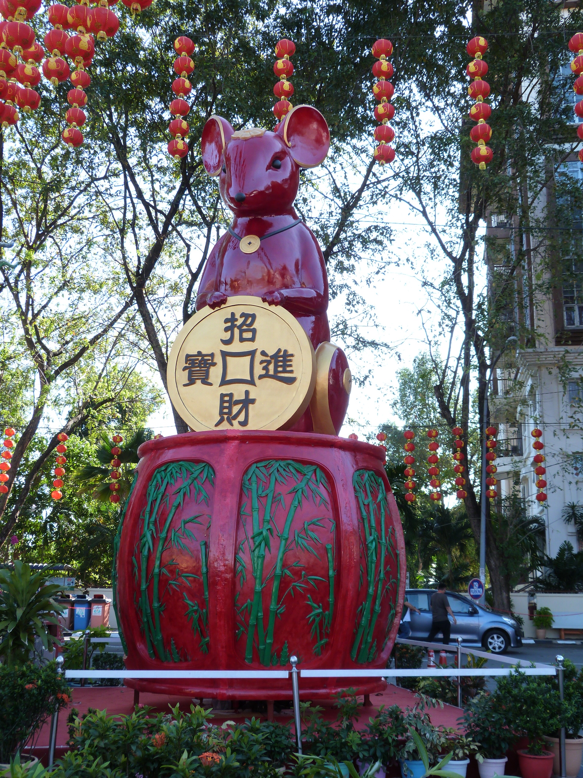Celebrating Chinese New Year. The new Lunar year, the year of the rat. Decorations everywhere