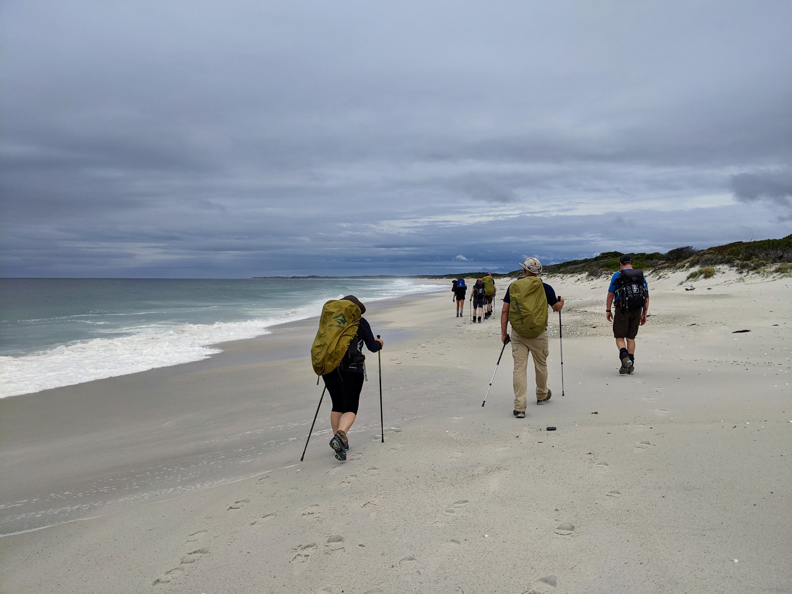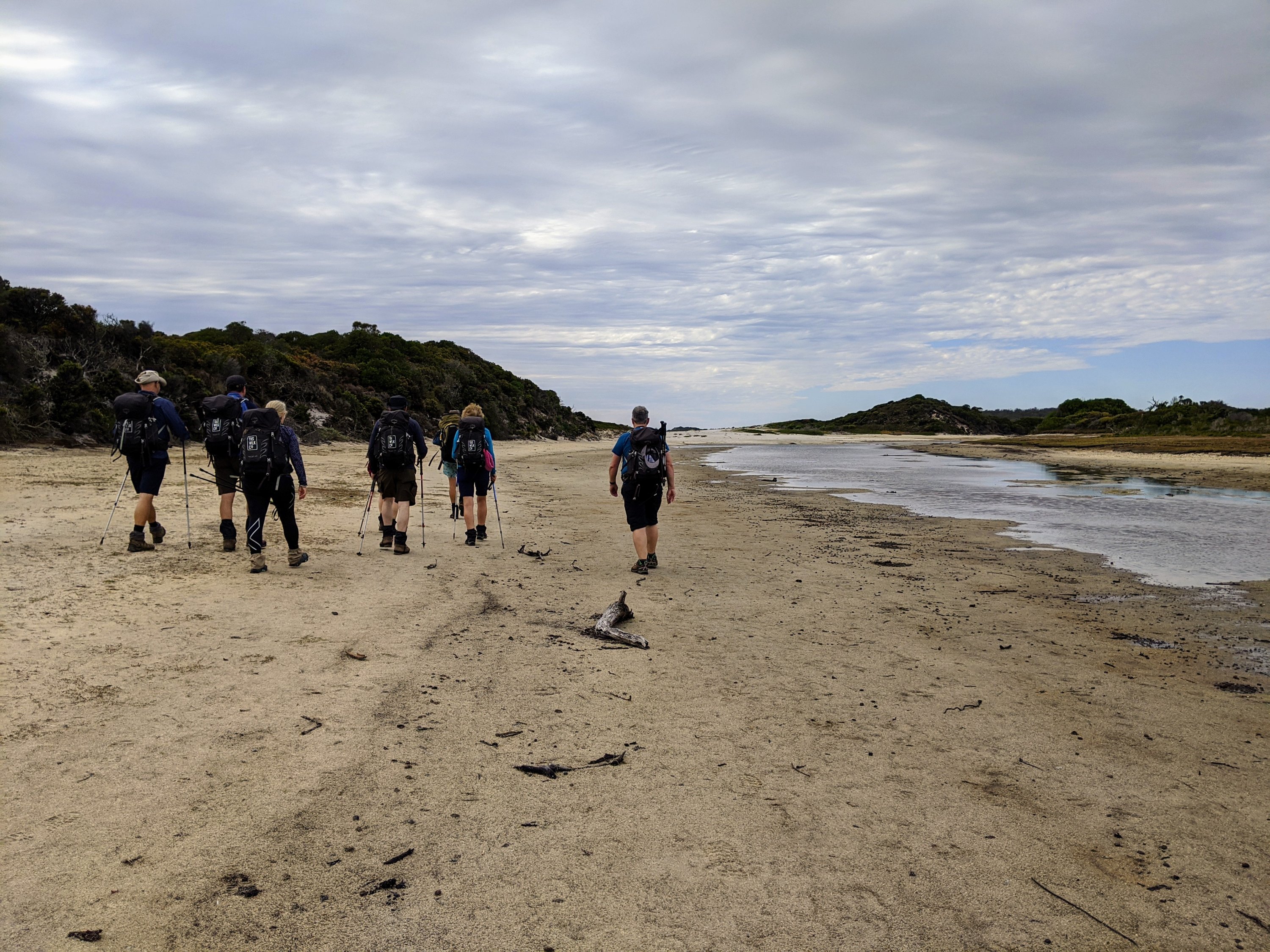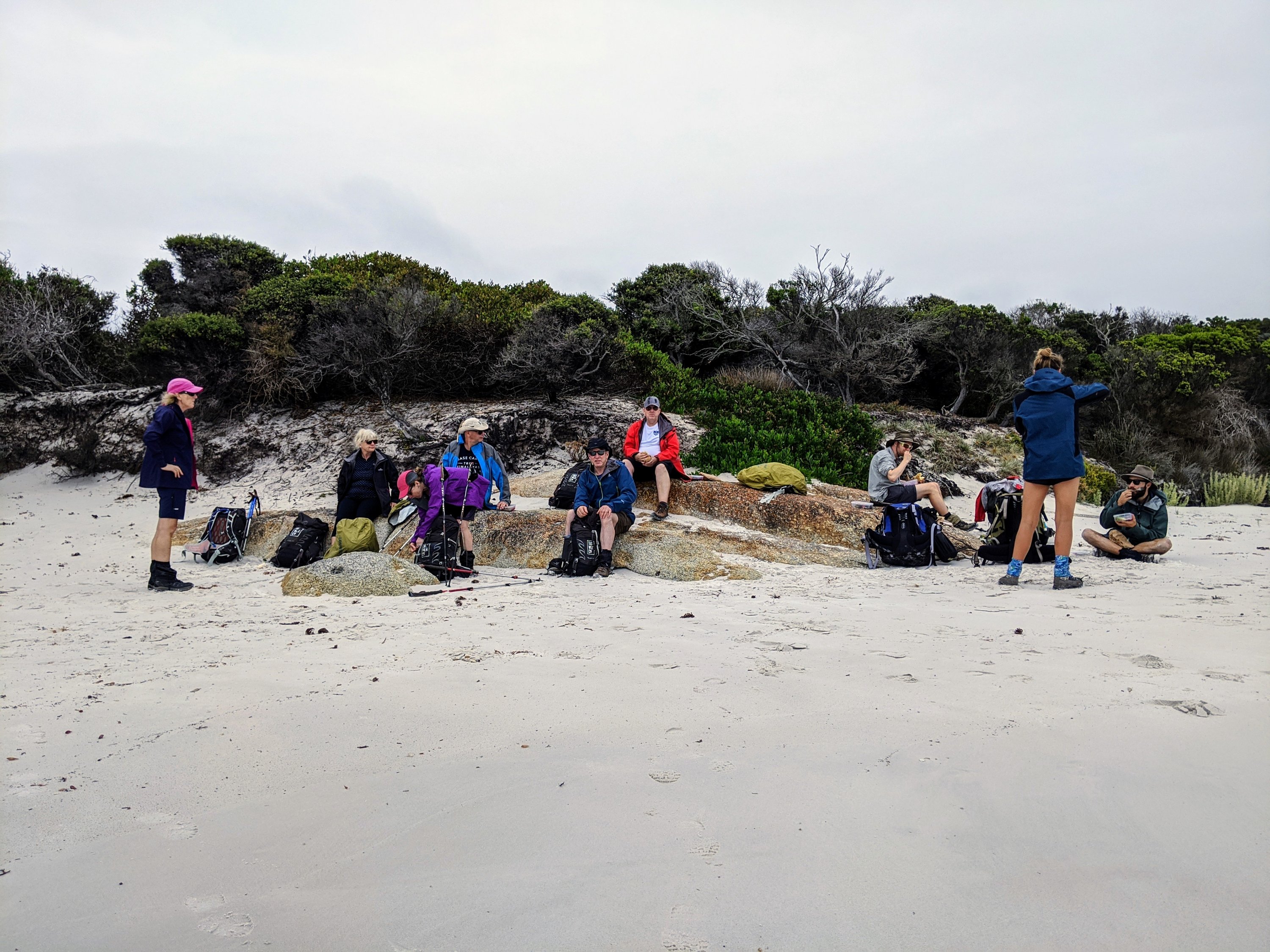 After a two hour bus journey from Launceston to Stumpy’s Bay we are all raring to go. About 10 km and 4 hours walking along on beaches in front of us. Changeable weather conditions with a couple of heavy showers. But such beautiful scenery