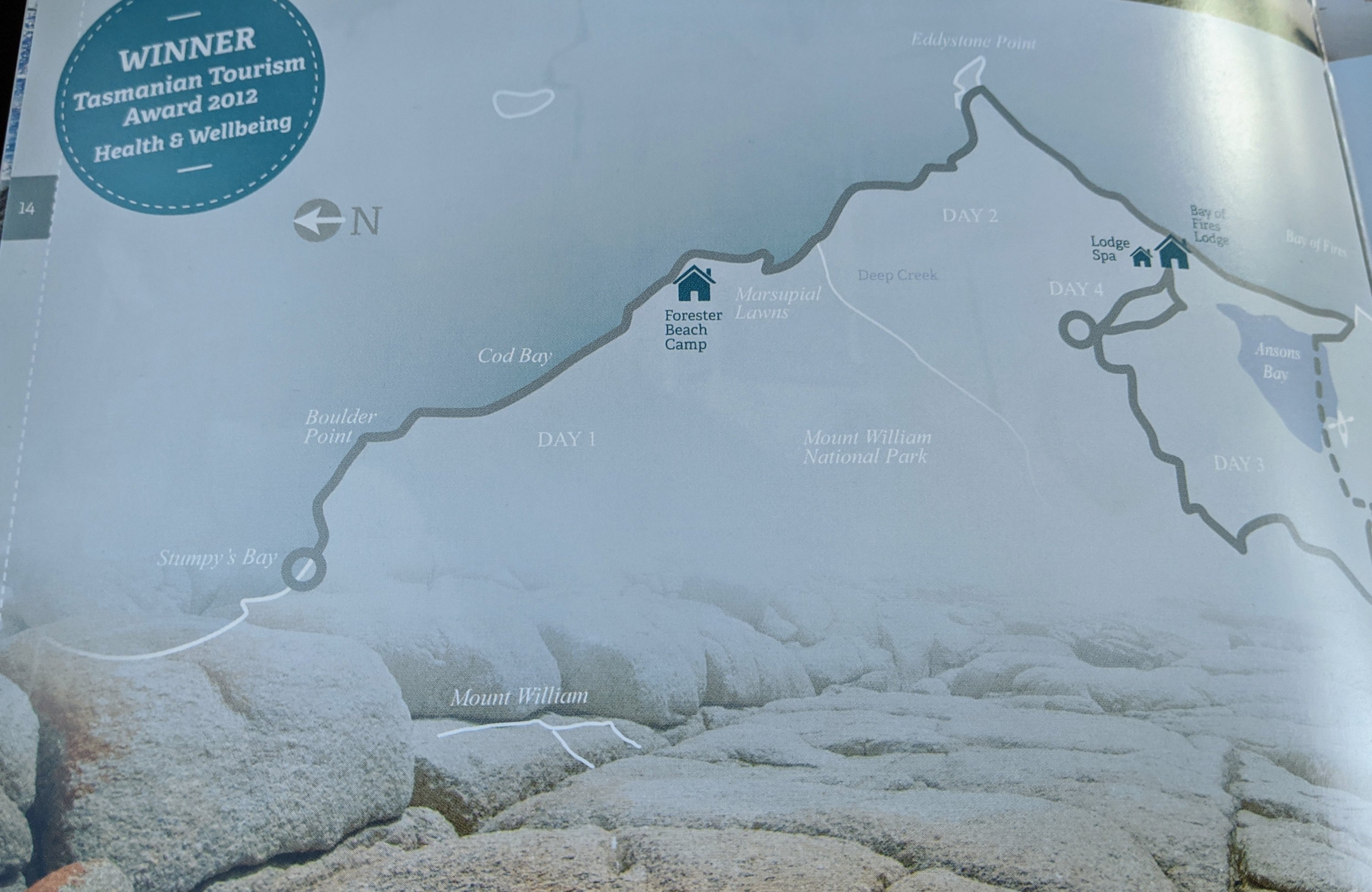Day 2 saw us set off at 9am after a hearty breakfast again prepared by our guides. Walking along Deep Creek, around Picnic Point, up to Eddystone Lighthouse, across the Bay of Fires and Shelly Beach before reaching our goal for the day – Bay of Fires Lodge. Roughly 18km and 7 hour walk but plenty of breaks to refuel.